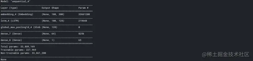 如你所见,可训练参数的数量仅为227969。与嵌入层相比,这是一个巨大的下降。