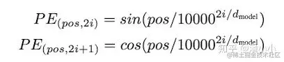 论文中使用的Positional Encoding(PE)是正余弦函数,位置(pos)越小,波长越长,每一个位置对应的PE都是唯一的。同时作者也提到,之所以选用正余弦函数作为PE,是因为这可以使得模型学习到token之间的相对位置关系:因为对于任意的偏移量k, 可以由 的线性表示: