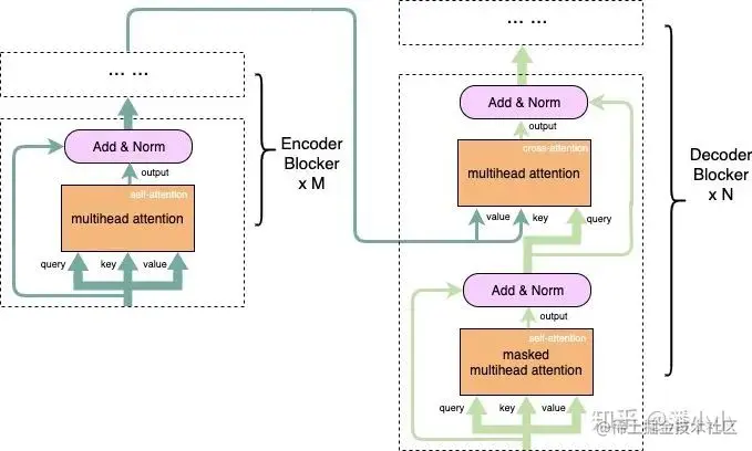 【cross-attention】decoder中的cross-attention的query对应了目标端序列,key, value对应了源端序列(每一层中的cross-attention用的都是encoder的最终输出)