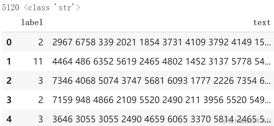 发现text域的数据是字符串。我们想要得到整数序列。可以用字符串分割split()。