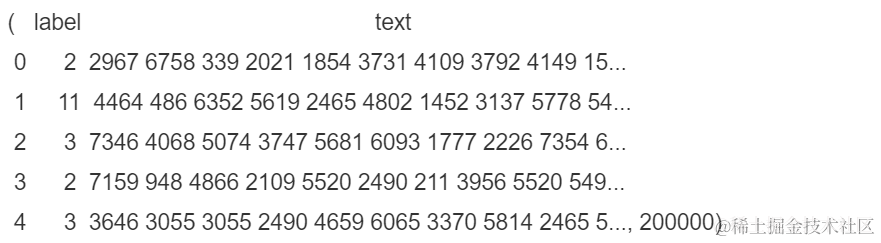 - 训练集共200,000条新闻,每条新闻平均907个字符,最短的句子长度为2,最长的句子长度为57921,其中75%以下的数据长度在1131以下。测试集共50,000条新闻,每条新闻平均909个字符,最短句子长度为14,最长句子41861,75%以下的数据长度在1133以下。
