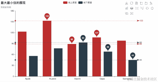 在工具栏中可以实现一键堆叠柱状图,当然也可以展现出数据中的最大值与最小值