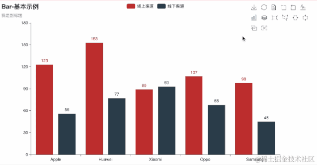 | 2 | 添加x轴、y轴的具体数据 | bar.add_x/yaxis() |