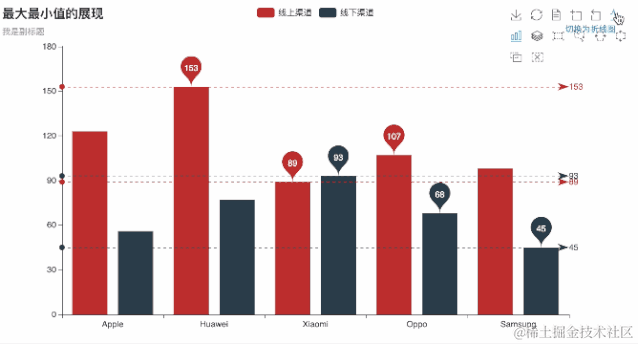 其实我们可以在柱状图的工具栏中,点击“切换为折线”将柱状图转换为折线图,当然,我们也可以将折线图还原成柱状图,点击“切换为柱状图”