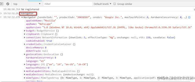 我们打开Chrome开发者工具,在console标签页输入navigator,回车,会发现这个对象包含了非常多的有用信息。
