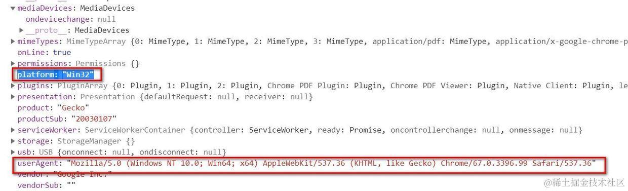 其中有个字段platform: 我如果在安装了Windows系统的电脑上使用Chrome,该值为Win32。