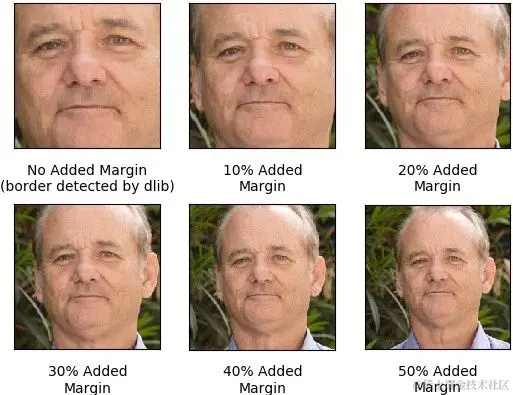 为了在训练前对图像进行归一化,将每张图像裁剪到受试者的面部,不包括面部周围的区域。使用Python库dlib检测每幅图像中的受试者的面部,并在dlib检测到的边界周围添加额外的边界,以生成用于实际训练图像。我们实验了几个边距,看看哪个能让网络表现得最好。我们选择了20%的边距,即图像的高度和宽度扩大40%(每边都是20%),因为它能产生最佳的验证性能。