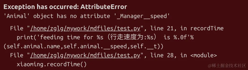同时Manager类的self.animal.speed修改为self.animal.__speed,再次调用下面方法时: