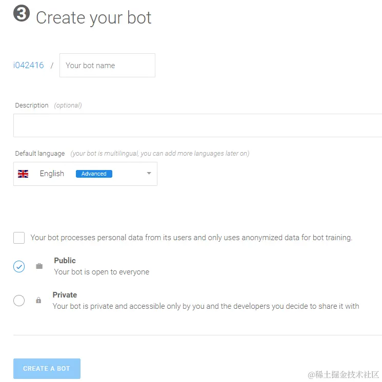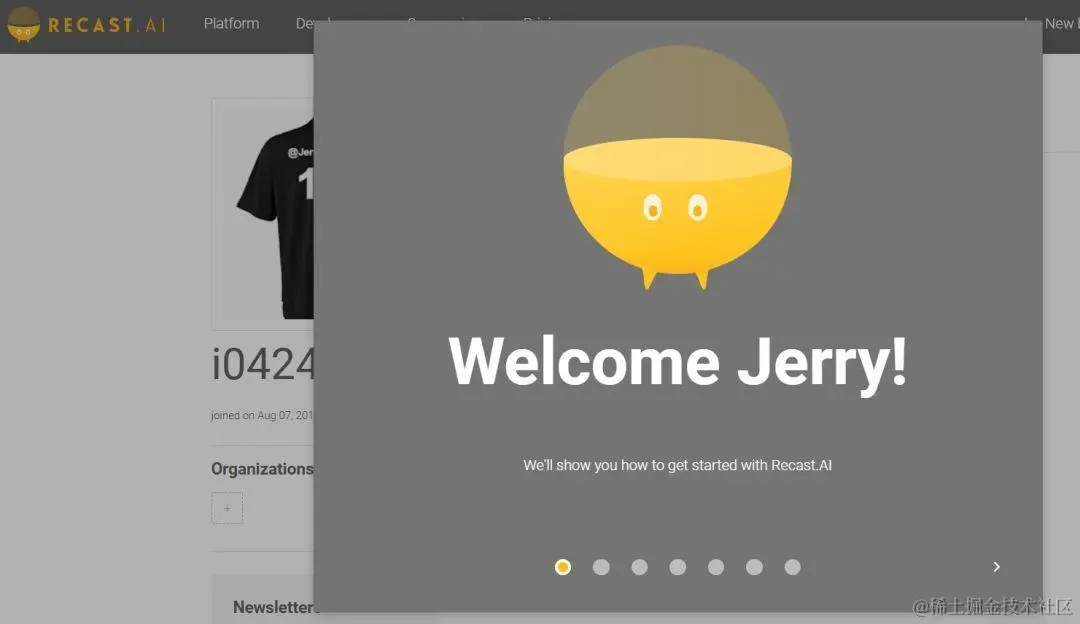 点击按钮允许Recast.AI访问您Github账号的公有信息后,能看到这个欢迎界面: