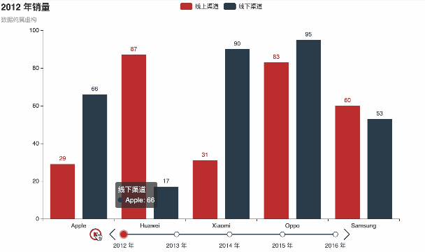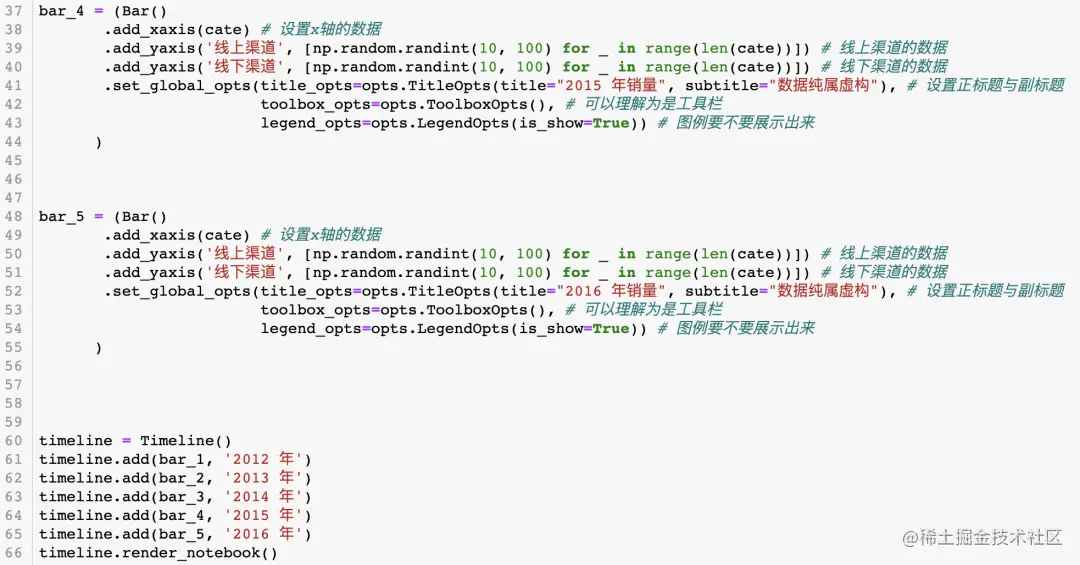 在Pyecharts中的Timeline()方法将提供时间线轮播多张图,例如