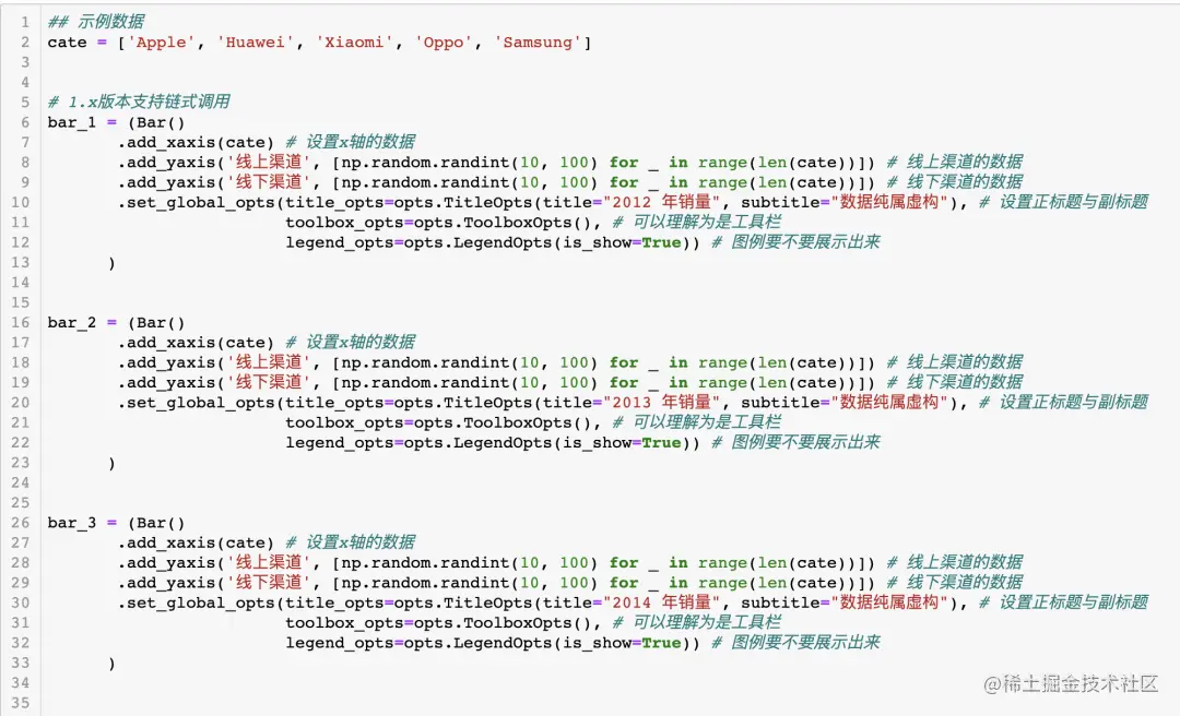 | 2 | 往里面添加具体图表 | page.add(bar) |
