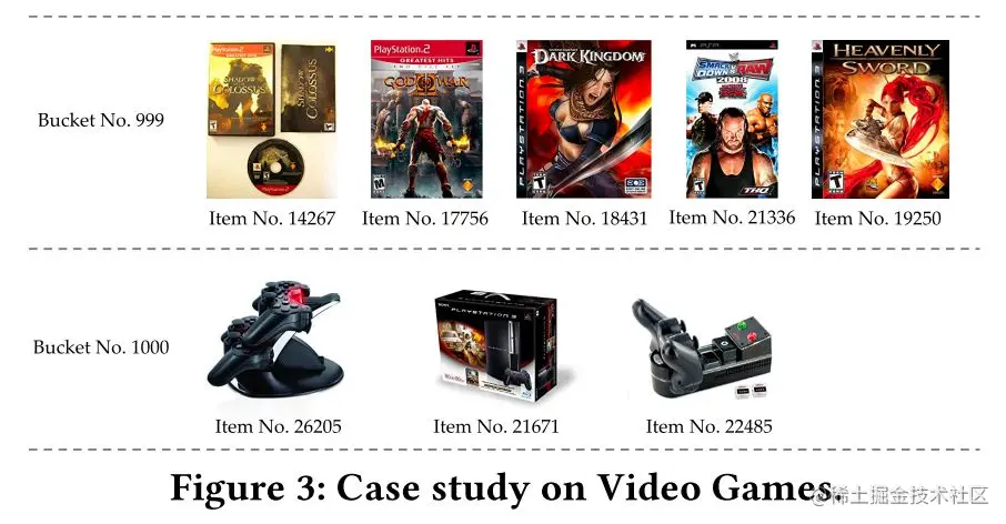 为了观察PreHash在篮子中学到了什么。检索了每个篮子里出现次数最多物品。可以观察到,在层级hash后,两个篮子相关但是彼此不同。两个篮子分别是游戏软件和硬件。证明PreHash中算法的有效性。