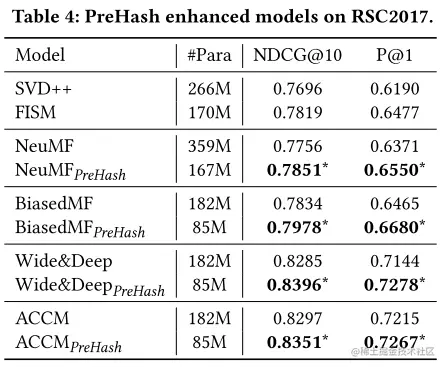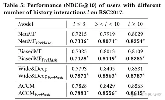 实验结果表明,效果在三个部分都有提升。PreHash好的原因是在hash部分 「显式得利用到了同组频繁用户」 (warm user)的偏好。