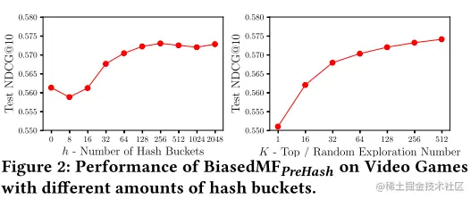 「去除hash part,只包含history part的效果已经比较好」 。因为在矩阵过于稀疏时,矩阵分解中的潜向量很难捕捉到用户历史和偏好。但是**「history part可以捕捉到」** 。