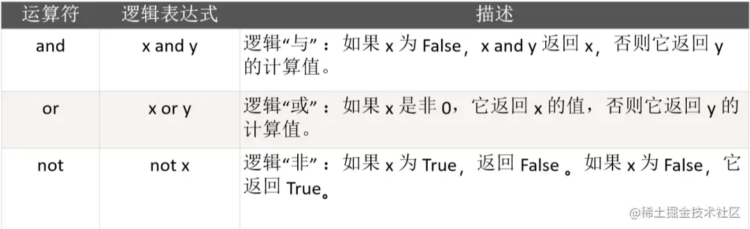 逻辑运算中,非 0 值视为 True,0 视为 False 。