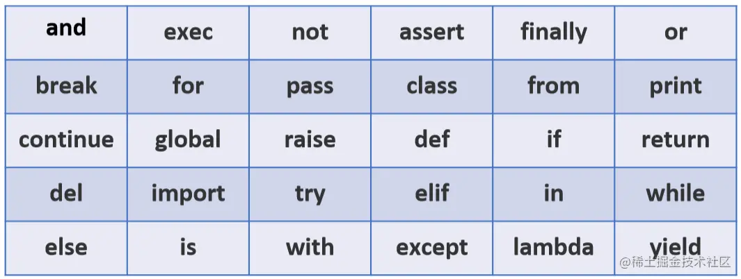 保留字(关键字)不能用作常数或变量,也不能作为任何其他标识符,需要注意的是,所有 Python 关键字只包含小写字母。