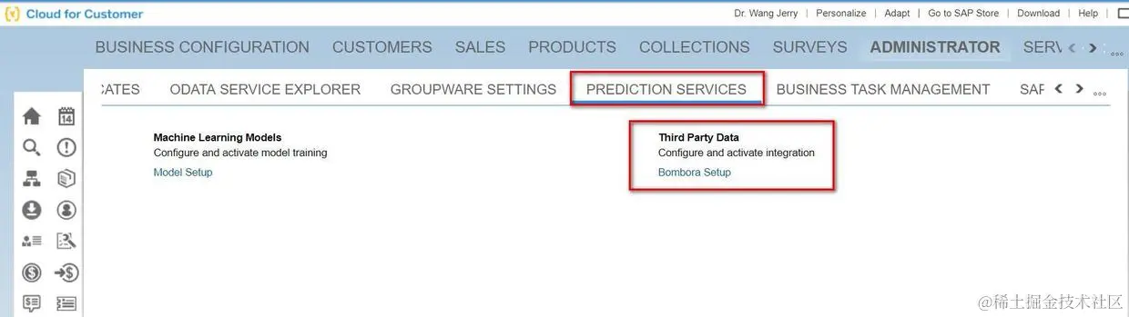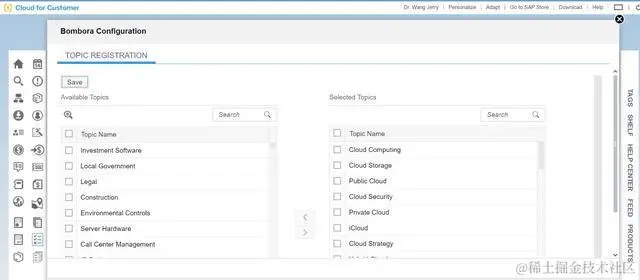 在C4C工作中心视图Predication Services的Third Party Data可以对Insights面板里需要关注的话题进行配置: