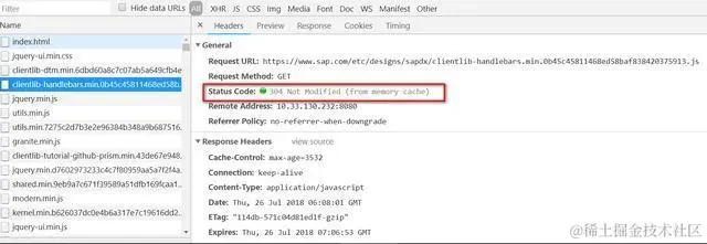 服务器接收到请求后,会把文件的Last-Modified时间和这个时间对比,如果时间没变,那么浏览器将返回304 Not Modified给浏览器: