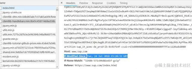 浏览器会在下次请求的时候,把Last-Modified的值作为Request Header的If-Modified-Since字段带上。如果浏览器缓存的文件已经超过了Cache-Control(或者Expires),那么需要加载这个文件时,就会发出请求,请求的Header有一个字段为If-Modified-Since,如下图所示: