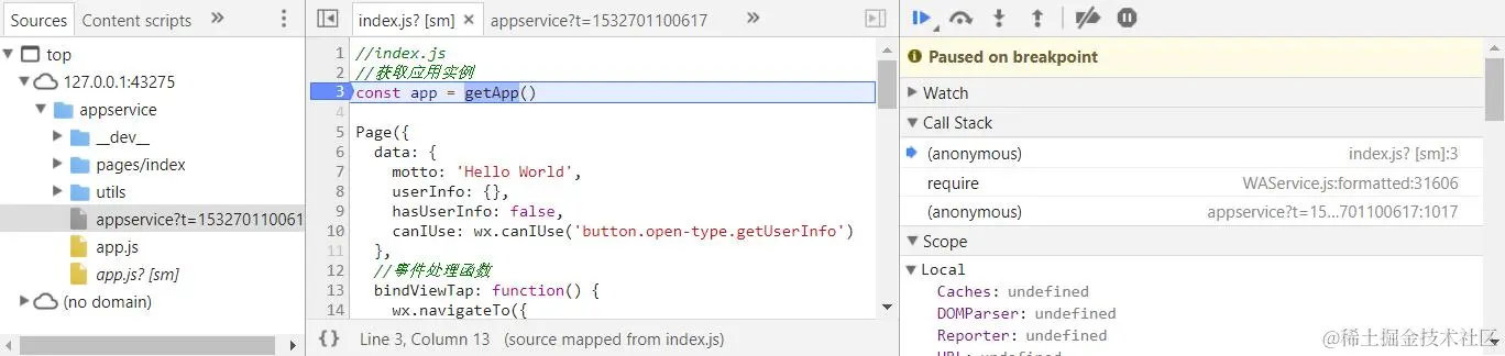 这个应用实例的创建是在我们小程序控制器的访问范围之外由微信框架创建的,然后直接在getApp函数里返回创建好的app实例: