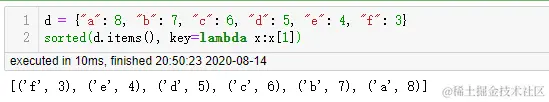 有时候我们也需要对字典进行排序,也是使用 sorted 函数,不过对字典排序后返回的是列表,列表中是元组(tuple)