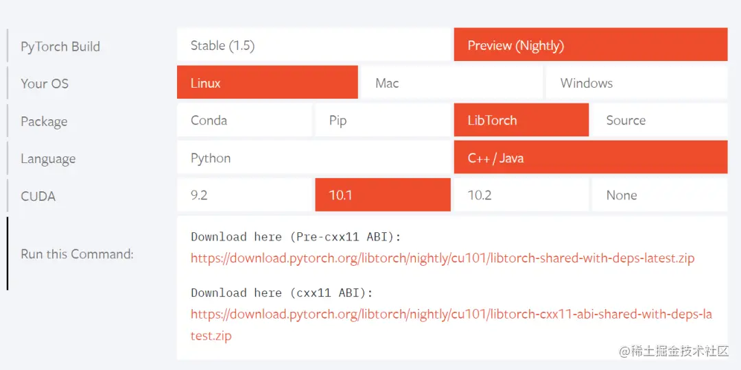 我们可以直接从PyTorch官网下载已经编译好的libtorch安装包,当然也可以下载源码自行进行编译。这里需要注意的是,安装的libtorch版本要与Python环境下的PyTorch版本一致。