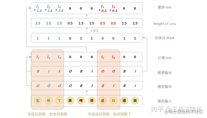 然后我想了一个办法,通过控制模型学习时的 Loss 来控制 P/R:如果模型没有识别到一个本应该识别到的实体,就增大对应的 Loss,加重对模型的惩罚;如果模型识别到了一个不应该识别到的实体,就减小对应的 Loss,当然是选择原谅他