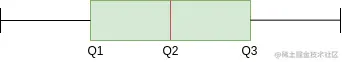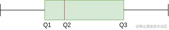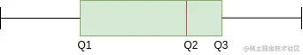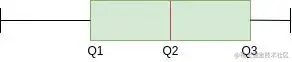 上图是对称分布的箱线图。你会注意到Q1和Q2之间的距离是相等的,即: