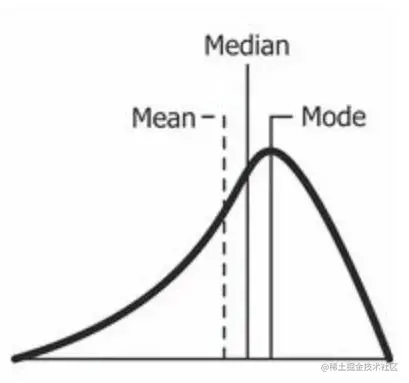 正如你可能已经猜到的,负偏态分布是尾巴位于左侧的分布。负偏态分布的偏度值小于零。你还可以在上图中看到**「均值<中值<众数」**。