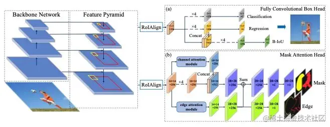 介绍:有效地保持蒙版边界完整对实例分割很重要。在此任务中,许多工作片段实例都是基于框头的边界框,这意味着检测的质量也会影响蒙版的完整性。为了解决这个问题,本文提出了一个完全卷积的box head和一个在mask head中的监督边缘注意模块。box head包含一个新的IoU预测分支。它学习对象特征和检测到的边界框之间的关联,以提供更准确的边界框进行分割。边缘关注模块利用关注机制来突出对象并抑制背景噪声,并设计了一个有监督的分支来引导网络精确地关注实例的边缘。