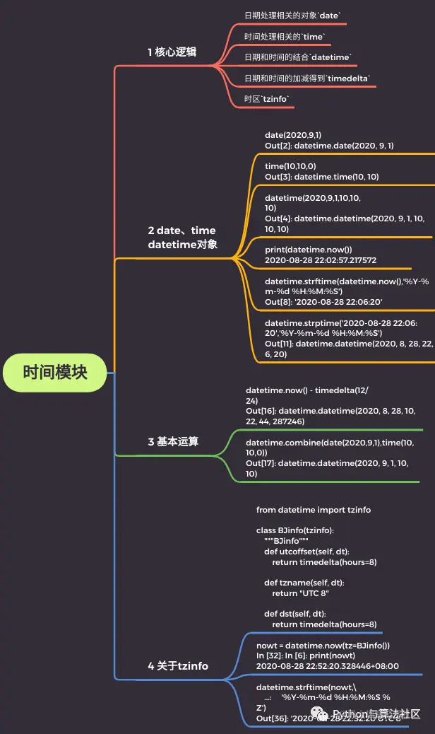 今天是Python时间模块核心使用逻辑。本篇思维导图如下: