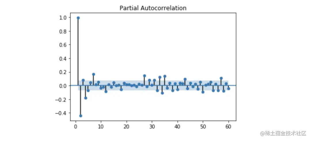 另一个非常重要的函数是部分自相关函数,其中消除了先前的滞后对当前区间的影响,只保留了当前区间滞后的影响来分析,例如:第四个滞后的偏自相关将消除第一、第二和第三个滞后的影响。