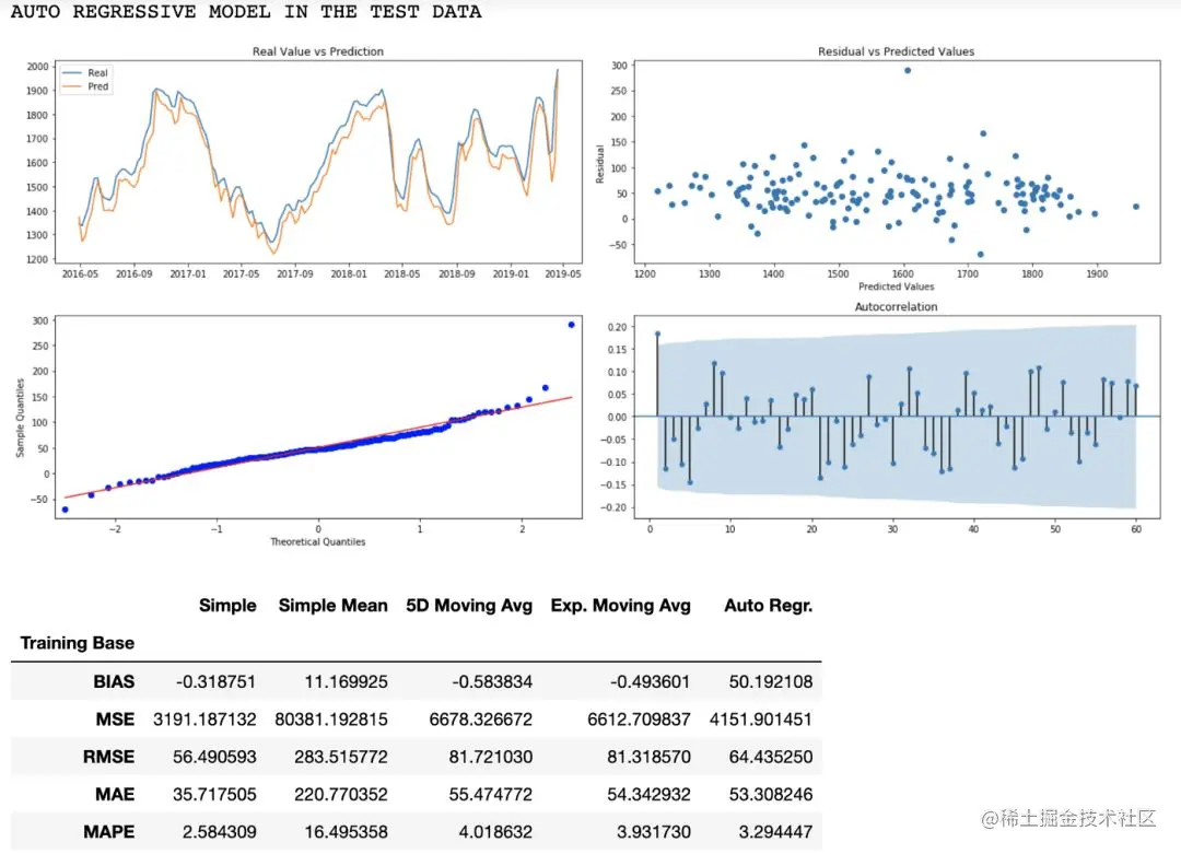 RMSE 和 MAE 的误差与训练数据相似,QQ 图与残差更符合理论值,可能是由于与训练数据相比样本值较少。