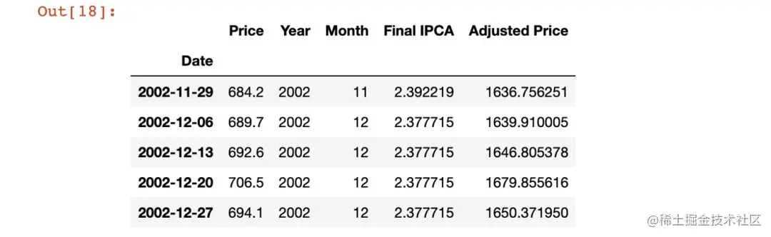 如果好奇,可以参阅下面的图表,其中调整后的价格与原始系列的通货膨胀率相对应。