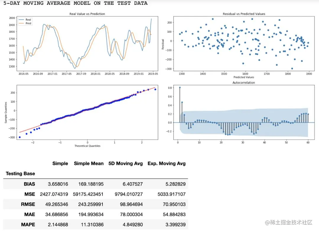 与训练数据相似,滑动平均模型优于简单平均模型,但尚未比简单模型基础有所增益。