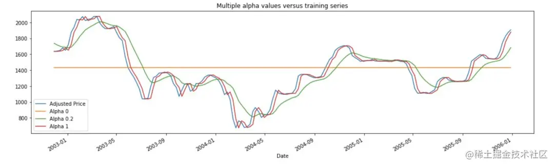 由于 α(alpha)是一个常数,其值介于 0 和 1 之间,因此我们将使用以下公式计算预测值: