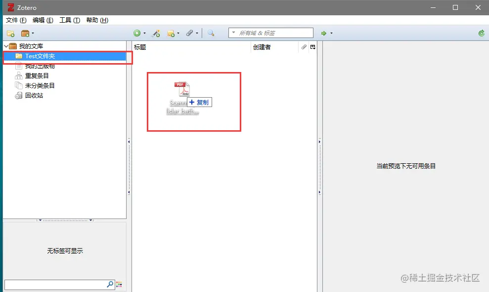 5. 将PDF文件鼠标拖至刚导入文件成为其子文件→完成中文文献的信息抓取