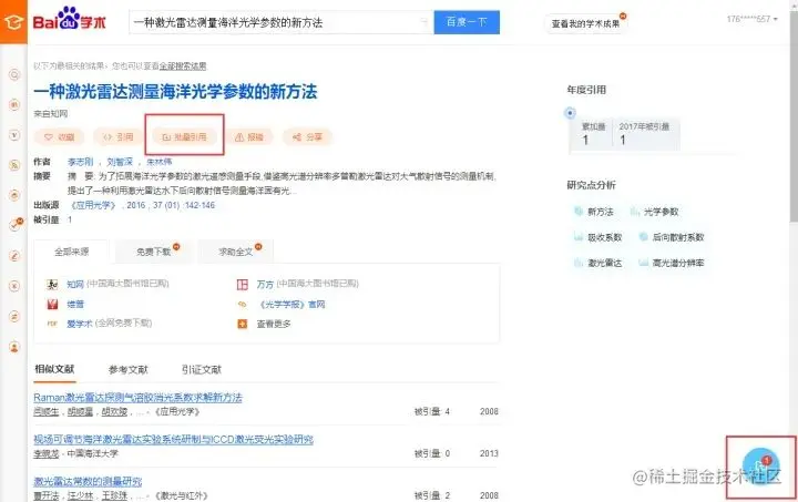 2. 在百度学术搜索文献→点击批量引用→导出到BibTex→下载