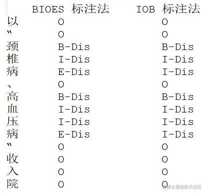 (2)BIOES 标注法,是在 IOB 方法上的扩展,具有更完备的标注规则。其中 B 表示这个词处于一个命名实体的开始,I 表示内部,O 表示外部,E 表示这个词处于一个实体的结束,S 表示这个词是单独形成一个命名实体。BIOES 是目前最通用的命名实体标注方法。