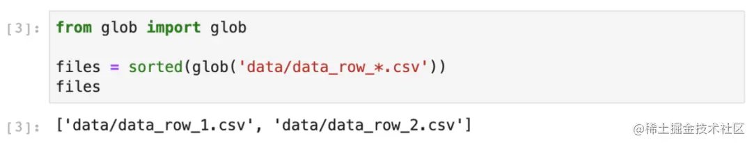 在上图中,glob()在指定目录中查找所有以“ data_row_”开头的CSV文件。