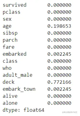 还可以看缺失值在该列的占比是多少,用df.isna().mean()方法: