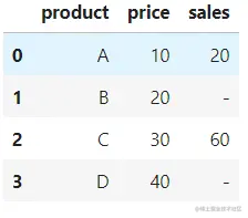 值得注意的是,price列都是数字,sales列有数字,但空值用-代替了。