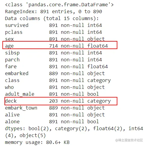 标红色地方是有缺失值的列,并且给出了非缺失值的数量,你可以计算出该列有多少缺失值。