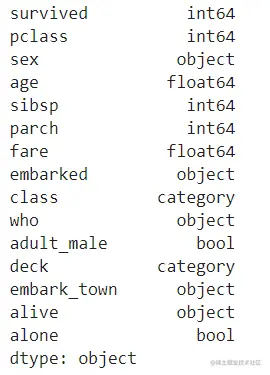 可以看到各列的数据类型不太一样,有int、object、float、bool等。