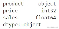 product列是字符串类型,price、sales列虽然内容有数字,但它们的数据类型也是字符串。