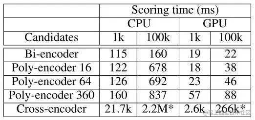实验结果已经表明 Poly-encoder 明显优于 Bi-encoder架构,且性能逼近 Cross-encode 架构的效果。在检索耗时方面,其速度比 Cross-encoder 足足快了约 2600-3000倍!