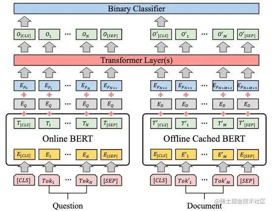 - 在测试期间,我们只使用在线 BERT 模型对问题进行一次编码,并从缓存中读出由 retrieve 模块检索得到的所有候选文档的缓存编码。