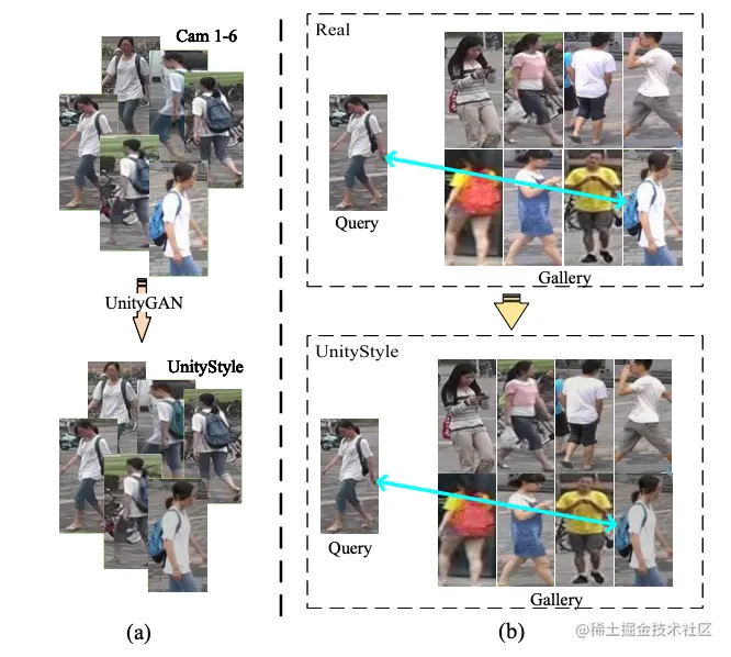 同时,他们使用 UnityStyle 图像来消除不同图像之间的风格差异,使得 query(查询目标)和 gallery(图像库)之间更好地匹配。