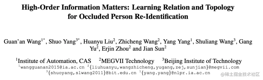 旷视研究院在 CVPR 2020 中发表的论文 《High-Order Information Matters: Learning Relation and Topology for Occluded Person Re-Identification》 中,解决了该领域中,经常出现也最具挑战性的问题——行人遮挡问题。