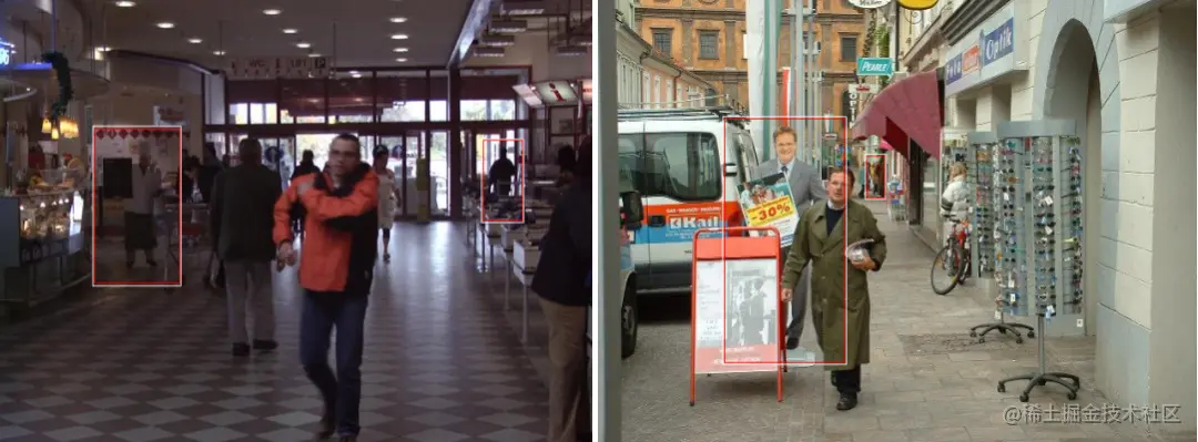 视频中标注了共计约 250000 帧(约 137 分钟),350000 个矩形框,2300 个行人,另外还对矩形框之间的时间对应关系及其遮挡的情况进行标注。